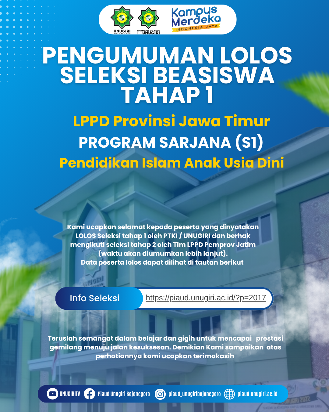 LOLOS Seleksi tahap 1 oleh PTKI / UNUGIRI