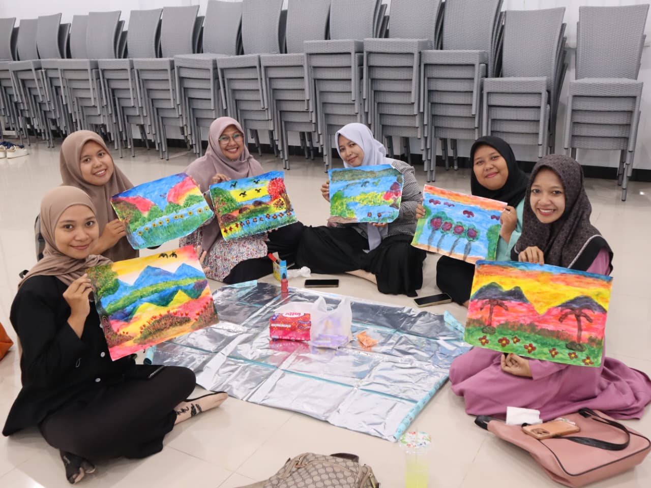 Setelah pembukaan, para peserta langsung terjun bereksplorasi dengan cat dan media lukis. Dengan penuh semangat, mereka mencampur warna, mencetak jari, dan menciptakan beragam gambar imajinatif di atas kanvas. Tawa dan celoteh gembira terdengar sepanjang acara, mencerminkan kegembiraan dalam proses belajar yang menyenangkan ini.