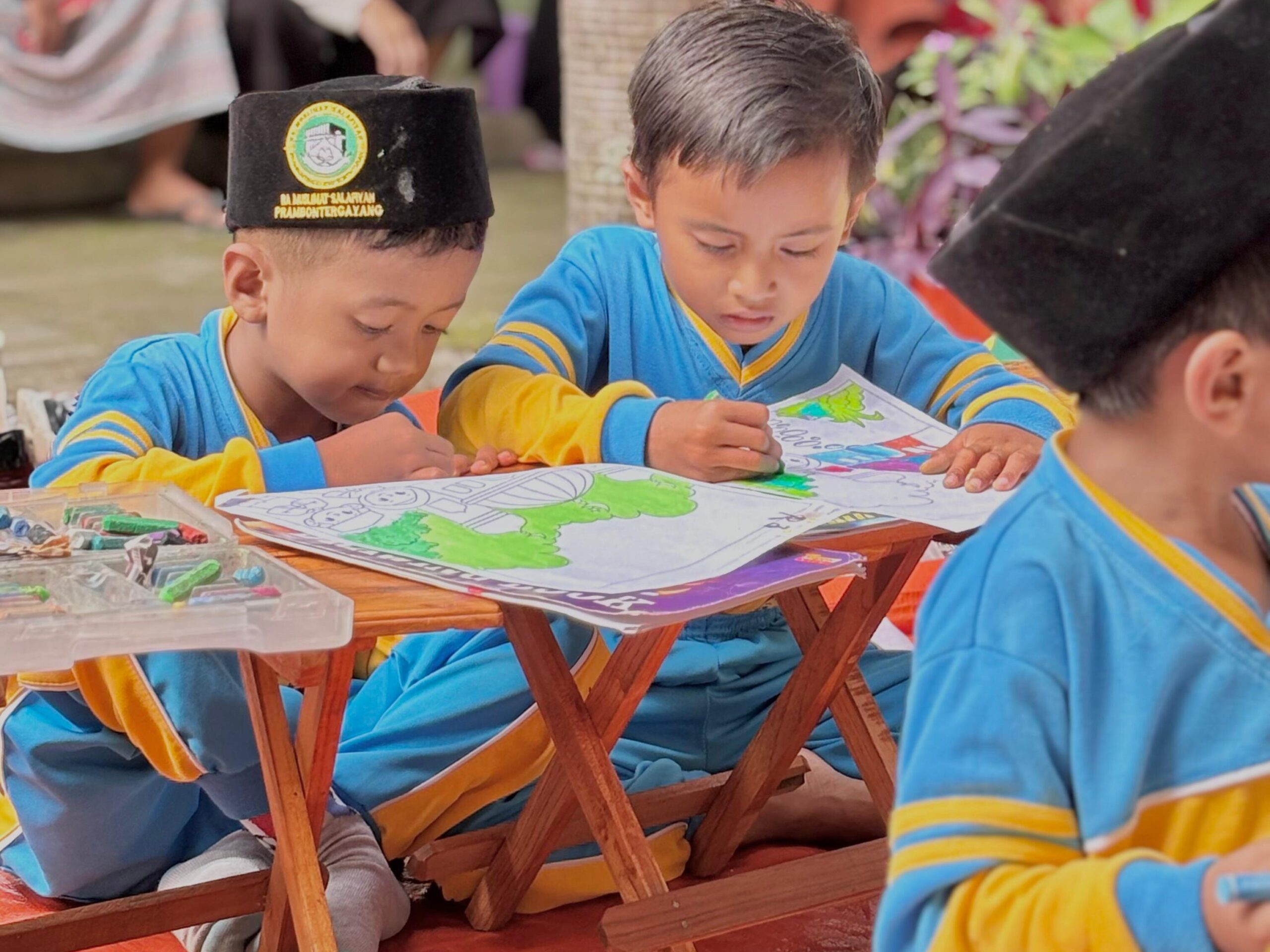 Anak-anak dengan perlengkapan mewarnai lengkap—krayon, pensil warna, dan buku gambar—tampak antusias mengambil posisi. Didampingi para mahasiswa Asistensi Mengajar, mereka mulai menuangkan imajinasi liar ke dalam lembar gambar bertema “Lingkungan Impianku”. Salah seorang panitia dari Kelompok 2 Asistensi Mengajar menjelaskan bahwa lomba ini dirancang bukan sekadar ajang kompetisi. “Kami ingin menciptakan ruang ekspresi bebas bagi anak-anak. Di sini mereka belajar memadukan warna, melatih konsentrasi, dan yang terpenting, membangun rasa percaya diri bahwa karya mereka berharga,” ujarnya.